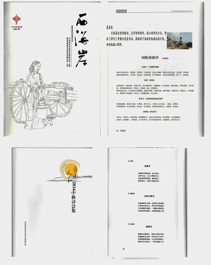 在這場文化盛宴中,我司夏亮亮同志以青島海西重機技術(shù)中心港口起重機研究所工程師的身份參與投稿,最終有四首作品入選文聯(lián)《西海岸》雜志,兩首作品入選《月圓人和2016中秋詩會集》,并獲邀參加當(dāng)晚的詩詞品鑒朗誦會。