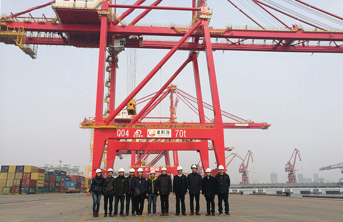 次日,在日照港客戶的大力支持下,考察團(tuán)隨同我司工作人員前往日照港,參觀考察了我司為其定制生產(chǎn)的大型岸橋、場橋、糧食碼頭門座起重機(jī)等設(shè)備,使考察團(tuán)對設(shè)備的現(xiàn)場使用情況有了更進(jìn)一步了解。