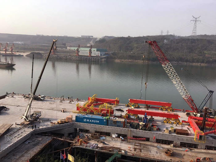 近日,海西重機(jī)為重慶龍頭港物流發(fā)展有限公司制造的1臺(tái)門座起重機(jī)、2臺(tái)岸邊集裝箱起重機(jī)散件全部運(yùn)抵業(yè)主碼頭,安裝工作全面鋪開。
