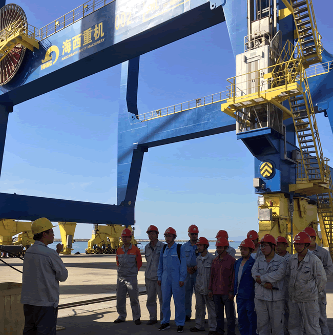 在國外的日子,整個(gè)項(xiàng)目組都很辛苦,很多人水土不服,出現(xiàn)了感冒、拉肚子、上火等現(xiàn)象,他們都克服了,與家人的聚少離多,他們也克服了。這就是我們海西人,初生牛犢不畏虎的闖勁和敢于擔(dān)當(dāng)?shù)木?,讓業(yè)主由衷地豎起了大拇指,也為我們?cè)俅螤渴?,簽?臺(tái)65T-63M岸邊集裝箱起重機(jī)、8臺(tái)40噸輪胎吊項(xiàng)目鋪平了康莊大道。