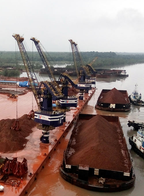 目前,韋立聯(lián)盟港口公司(WAP)滿負(fù)荷運(yùn)營(yíng),“海西重機(jī)”牌固定式起重機(jī)質(zhì)量可靠、裝船速度快,成功助力博凱內(nèi)港打破了港區(qū)泊位每個(gè)潮水位只能裝1條駁船的生產(chǎn)瓶頸,多次創(chuàng)造港區(qū)駁船轉(zhuǎn)運(yùn)新紀(jì)錄,為港區(qū)出礦量打下堅(jiān)實(shí)基礎(chǔ),大大提高了港區(qū)運(yùn)營(yíng)能力。未來(lái)隨著該批固定式起重機(jī)的投產(chǎn),屆時(shí)14臺(tái)海西重機(jī)設(shè)備將為博凱內(nèi)港實(shí)現(xiàn)年3000萬(wàn)噸裝卸目標(biāo)提供有力保證。