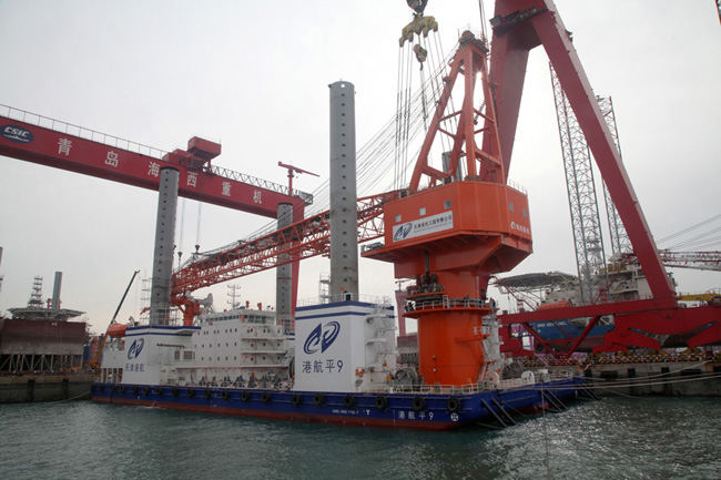經(jīng)過了10個月的千錘百煉,11月19日上午,所有準備就緒,我在海西重機1600t龍門吊和300t龍門吊協(xié)同作戰(zhàn),聯(lián)合抬吊近10個小時的忙碌下,項目團隊分秒必爭,游刃有余的在規(guī)定時間內(nèi)穩(wěn)穩(wěn)的將我安裝到位,整機吊裝工作一氣呵成,使我以完美的姿態(tài)呈現(xiàn)在青島海西灣這片美麗遼闊的海域。