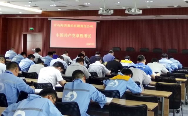 7月28日下午14點(diǎn),海西重機(jī)黨委組織公司正式黨員開展黨章考試,海西重機(jī)黨委書記、董事長鄧振山,黨委副書記、總經(jīng)理張懷志,黨委副書記、紀(jì)委書記朱聲凱,副總經(jīng)理、工會主席代振華參加了本次考試,共計120余名黨員參加了考試,預(yù)示著海西重機(jī)黨委成功組織開展逐字逐句學(xué)黨章活動。