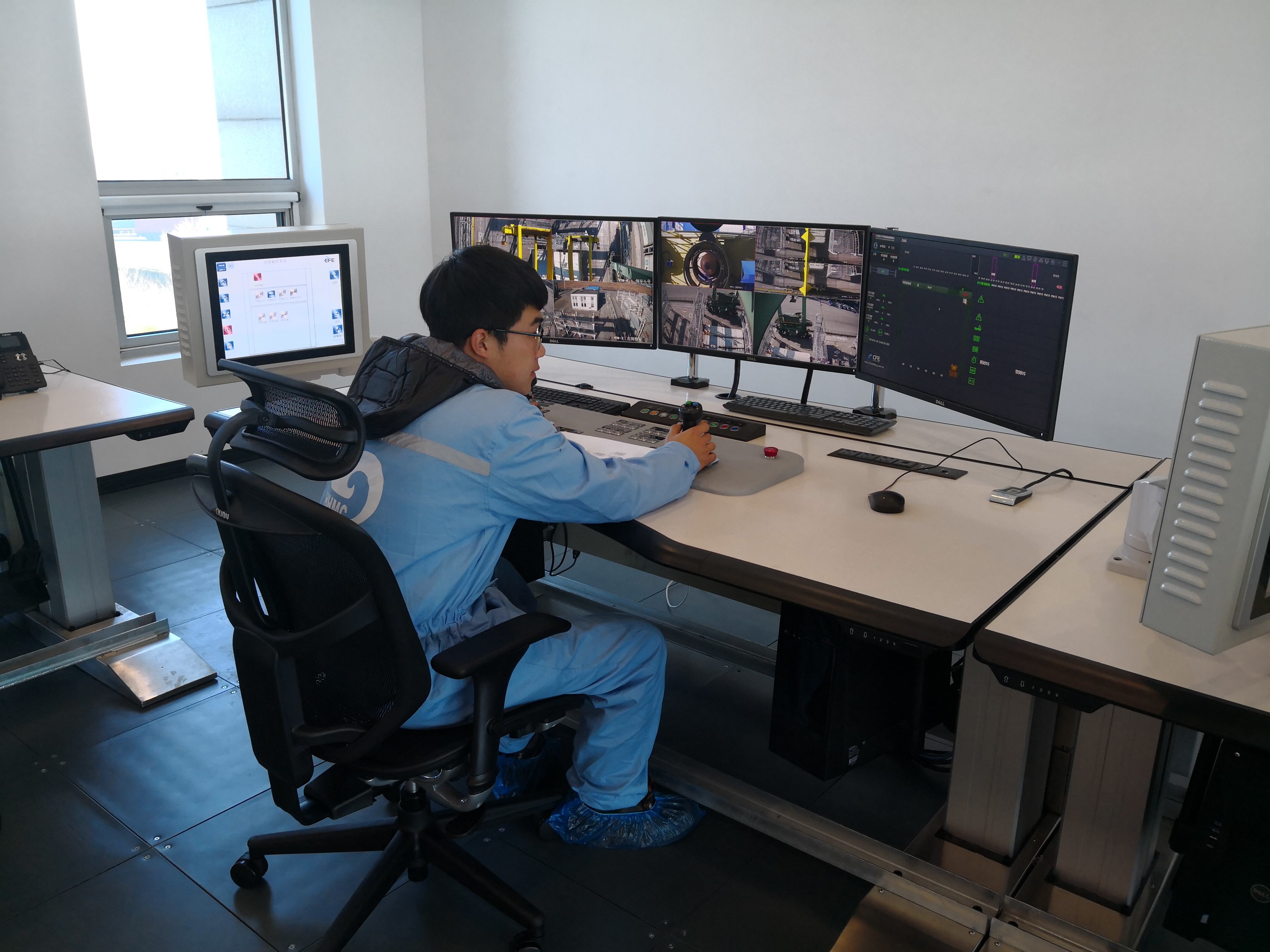 2019年的1月中旬,天津港太平洋碼頭空無(wú)一人,經(jīng)過(guò)自動(dòng)化改造后的2臺(tái)場(chǎng)橋(RTG)正在有條不紊地作業(yè)。“操縱”這一切的司機(jī),遠(yuǎn)在中控室,而這2臺(tái)設(shè)備全部由一人控制。改造后的設(shè)備,操作更為舒適與安全,通過(guò)遠(yuǎn)程操控,設(shè)備司機(jī)師傅可遠(yuǎn)程操作多臺(tái)RTG進(jìn)行生產(chǎn)作業(yè),改變了過(guò)去工作環(huán)境惡劣的狀況。