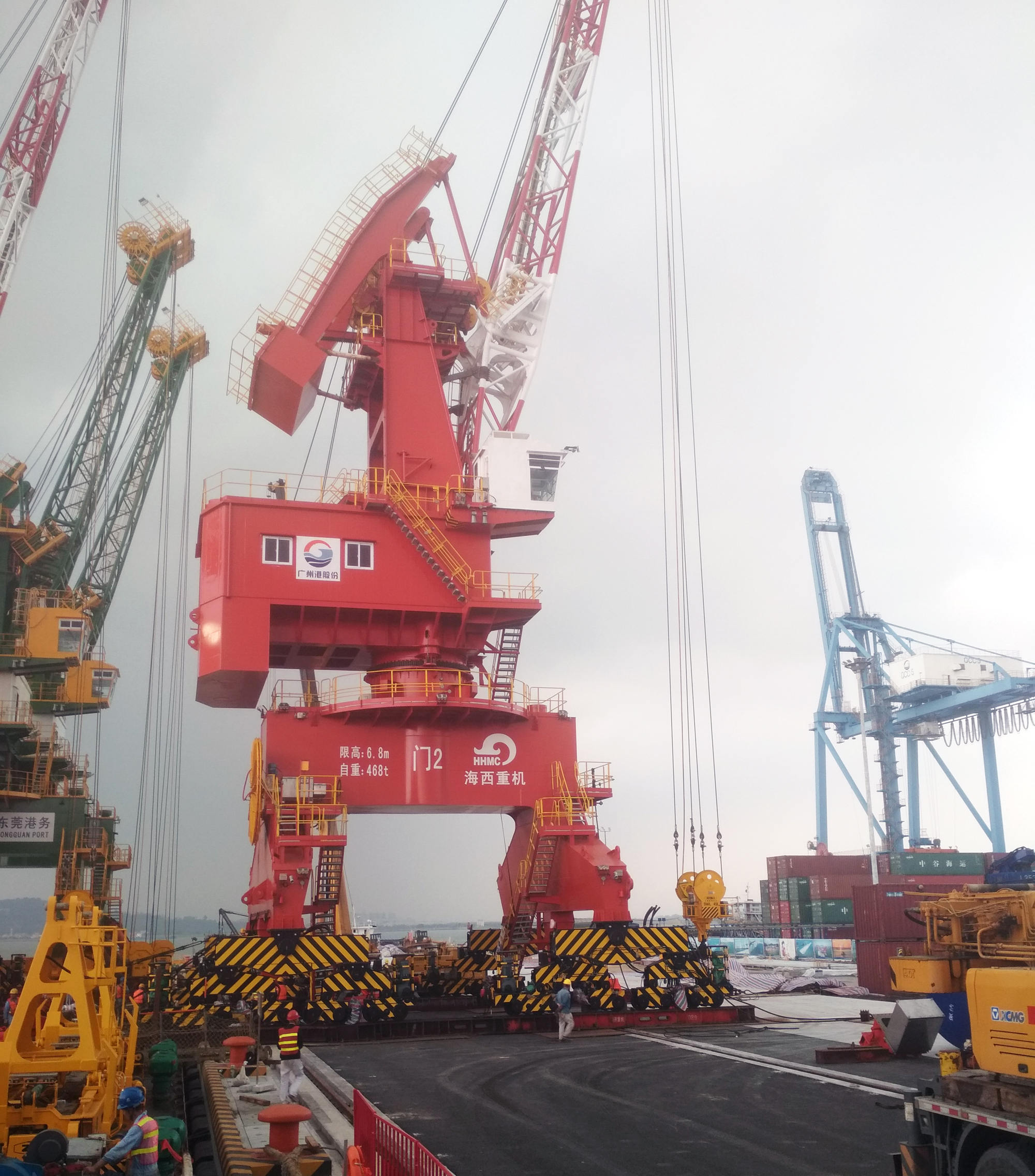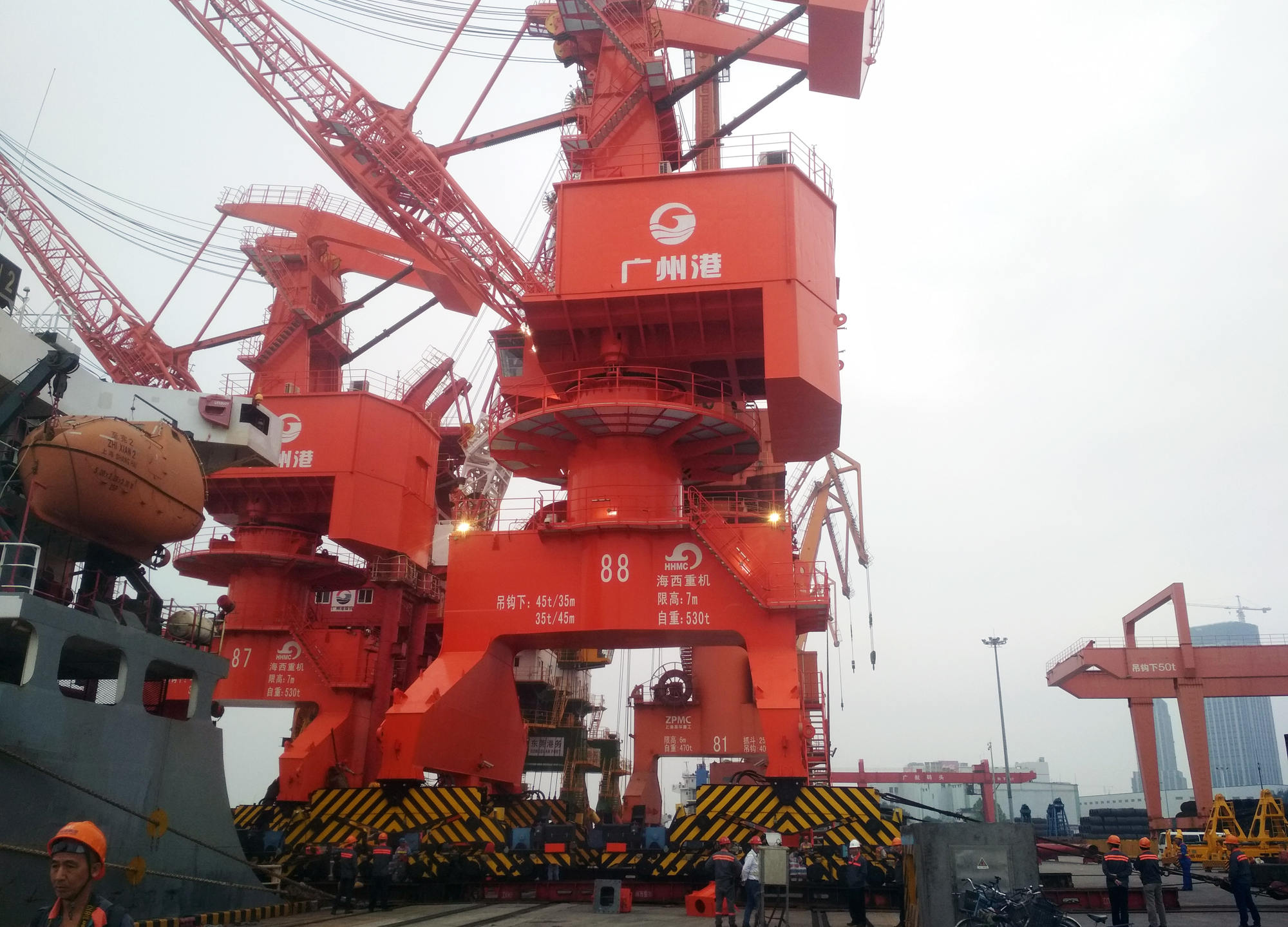 滿滿的一船門機。3月19日,我司分別為廣州港股份有限公司黃埔港務(wù)分公司、廣州港股份有限公司新沙港務(wù)有限公司、東莞市虎門港駁船碼頭有限公司制造的各2臺門機(共6臺)在海西重機的生產(chǎn)碼頭同船順利發(fā)運。3月26日,運輸船安全抵達黃埔港,一場卸船攻堅戰(zhàn)就此展開。