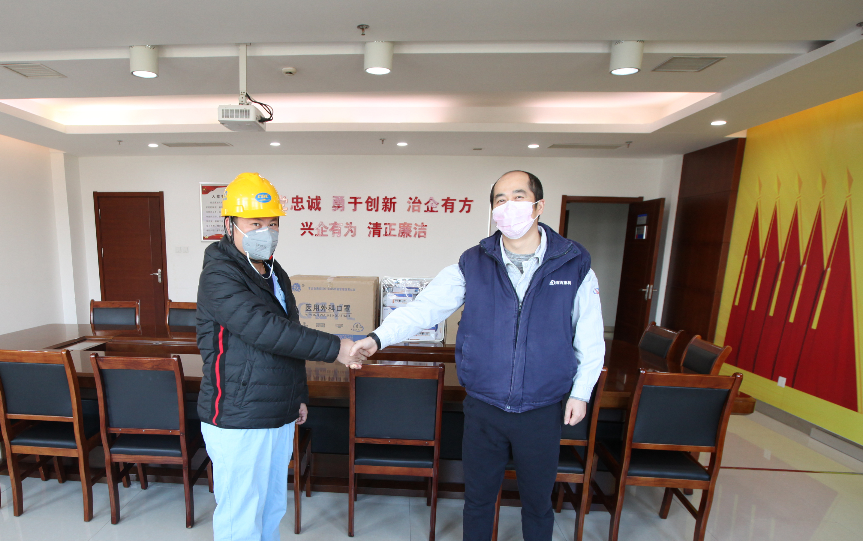 2月18日,海西重機接連收到青島英杰鋼結(jié)構(gòu)有限公司和毛里求斯CHCL公司捐贈的口罩,一定程度上緩解公司口罩緊缺的現(xiàn)狀,為保障海西重機抗疫復(fù)工提供了有力支撐。