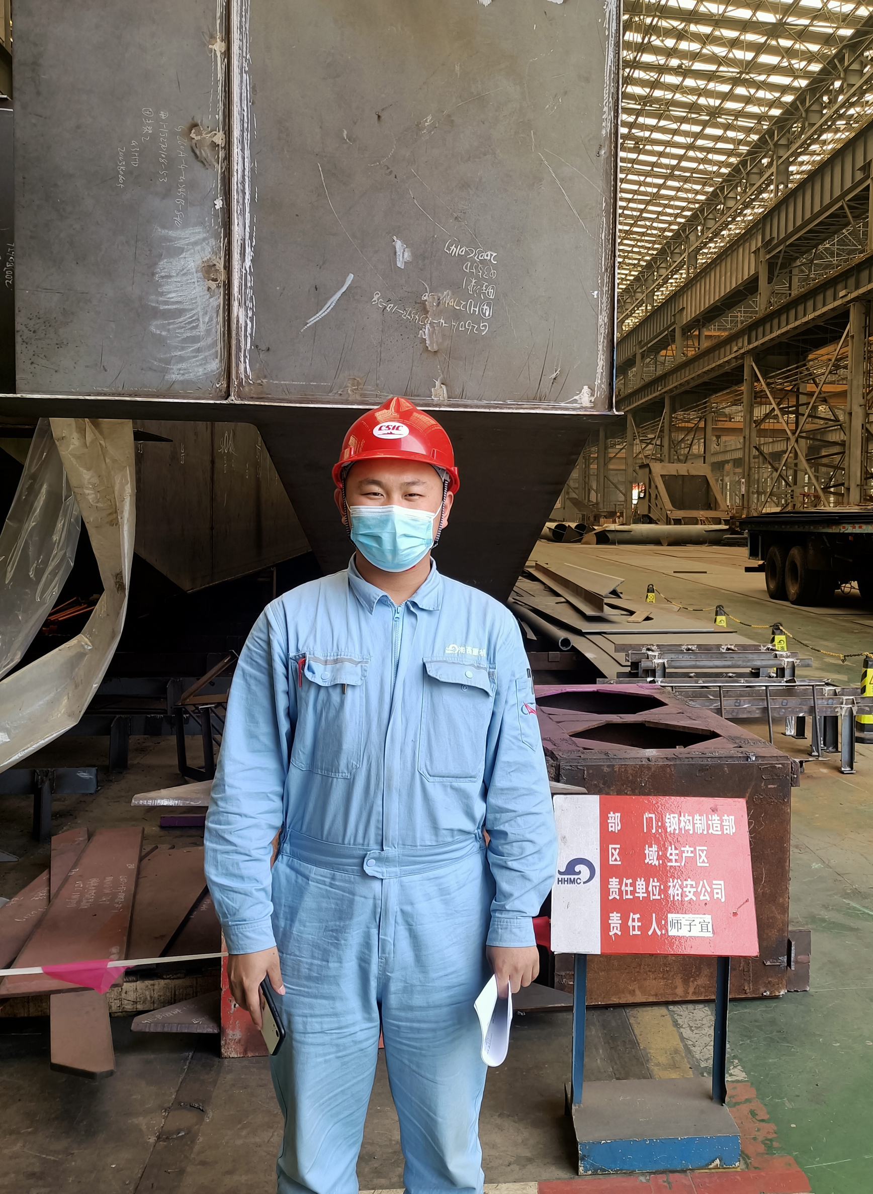平靜沉默不代表木訥。尹海斐是一個(gè)讓人容易誤解的優(yōu)秀計(jì)調(diào)員,雖然總感覺沉默不語,但絕對(duì)時(shí)刻保持頭腦清醒,不被他人和情緒左右。他擅于從紛繁雜亂的工作情景中,平靜快速的梳理出清晰的頭緒和脈絡(luò),他的第一個(gè)挑戰(zhàn)是K12-05前大梁轉(zhuǎn)運(yùn)吊裝的組織安排工作。接到命令后,第一時(shí)間聯(lián)系工藝落實(shí)技術(shù)方案,組織協(xié)理公司做前期準(zhǔn)備,過程不順利,現(xiàn)場(chǎng)組織嘗試多種辦法無果,轉(zhuǎn)運(yùn)失敗后,他沒有任何抱怨,立刻協(xié)調(diào)相關(guān)人員在港機(jī)所討論并確定具體可行方案,再返回現(xiàn)場(chǎng)組織實(shí)施并全程跟蹤,等到微信群內(nèi)匯報(bào)工作時(shí),只是簡(jiǎn)單的一張照片加幾個(gè)字“12-05前大梁,已出”,時(shí)間是晚上10點(diǎn)半。部門周三核對(duì)節(jié)點(diǎn)時(shí),他總是平靜從容,對(duì)每個(gè)節(jié)點(diǎn)涉及的人員設(shè)備安排、物料情況、工藝方案都了然于心,跨工序的協(xié)助欄桿清點(diǎn)物料,落實(shí)安裝條件,真正的做到向前跨一步,向后看一步,是一個(gè)很有計(jì)劃性、很有執(zhí)行力的計(jì)調(diào)員!