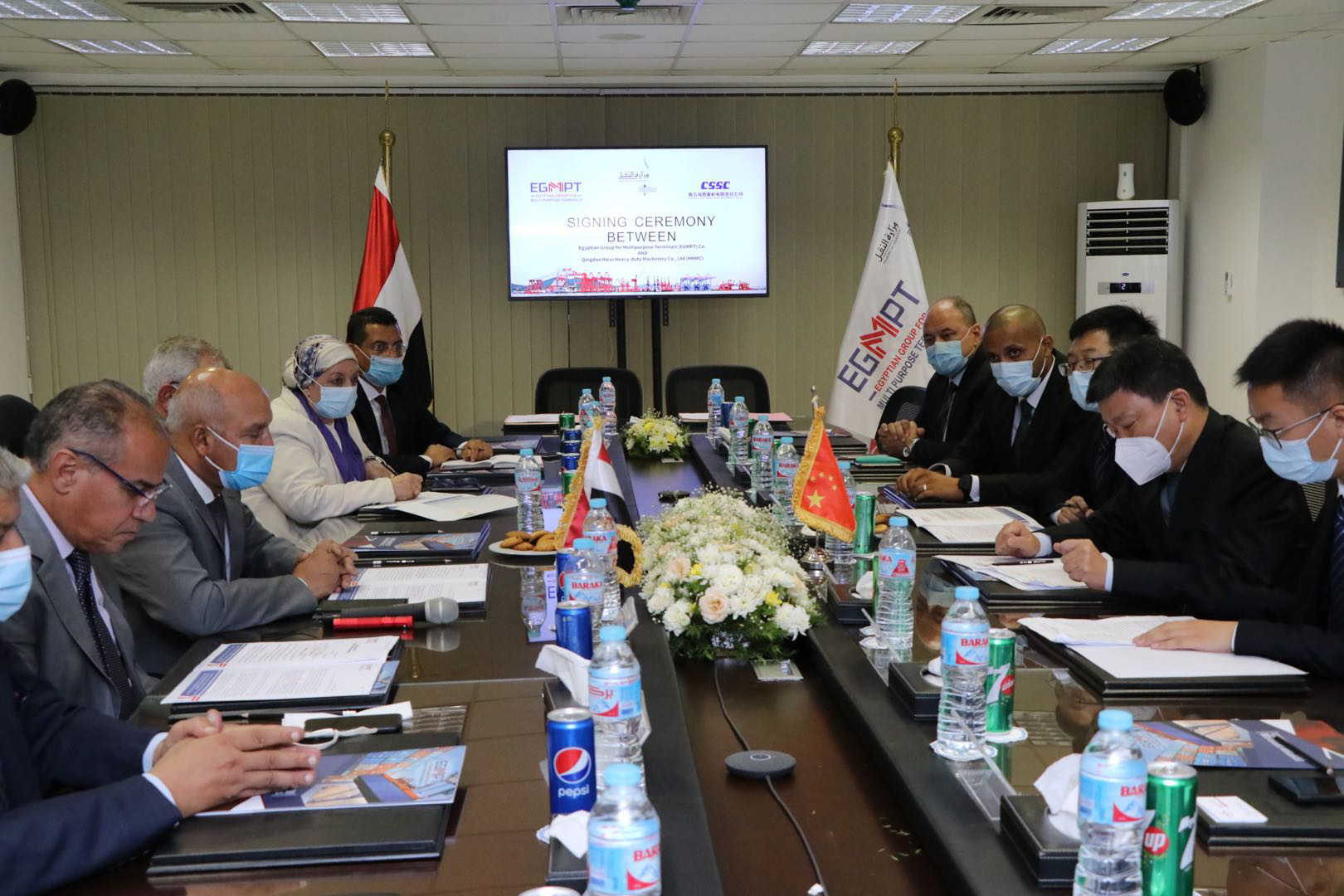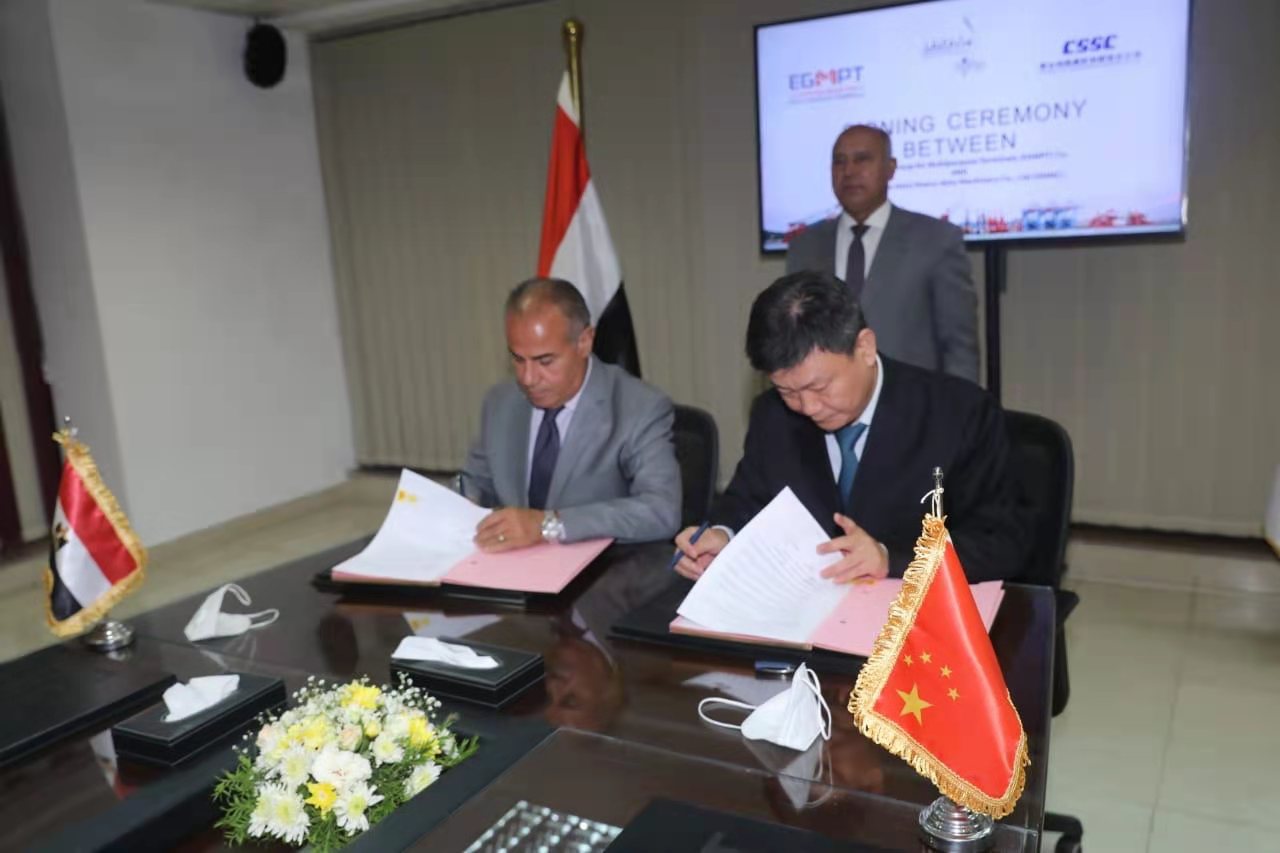 當(dāng)?shù)貢r(shí)間8月7日,中國船舶集團(tuán)旗下武漢船機(jī)海西重機(jī)公司與埃及亞歷山大港多用途碼頭簽訂批量岸橋項(xiàng)目。埃及交通部部長(zhǎng)Kamel Elwazir、多用途碼頭(EGMPT)主席Abdelkader Darwish、達(dá)飛集團(tuán)駐埃及負(fù)責(zé)人Eng.Tariq Zaghloul及EGMPT技術(shù)團(tuán)隊(duì),海西重機(jī)黨委書記、董事長(zhǎng)鄧振山等出席現(xiàn)場(chǎng)簽約儀式。