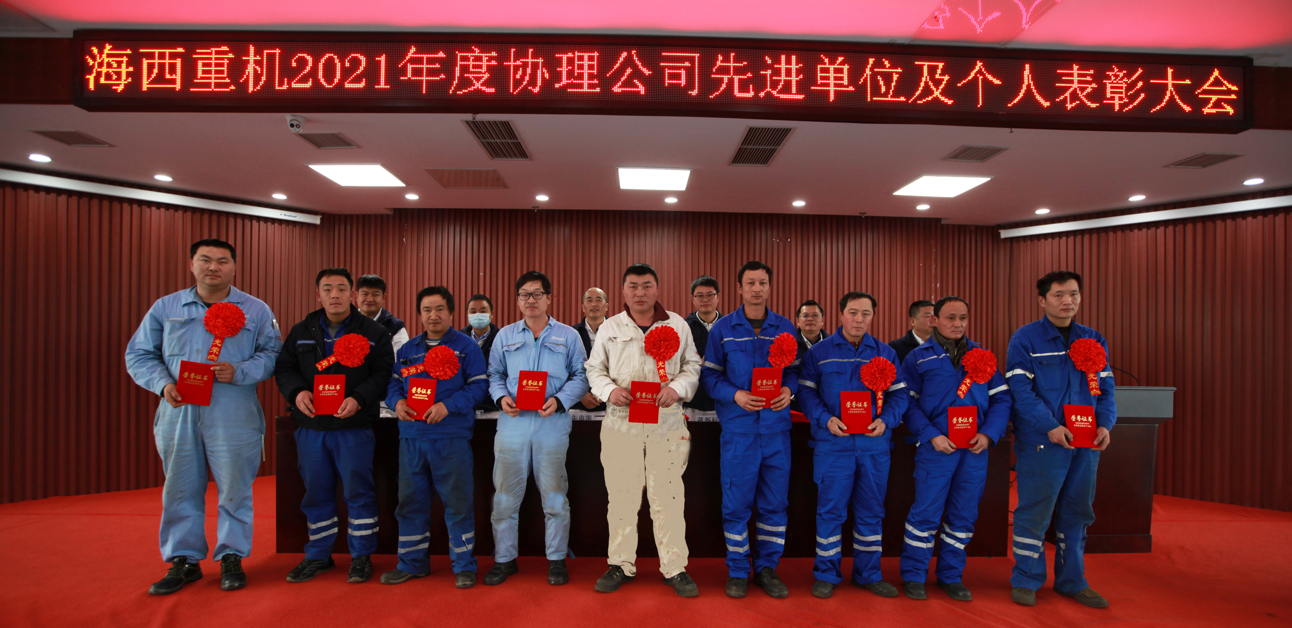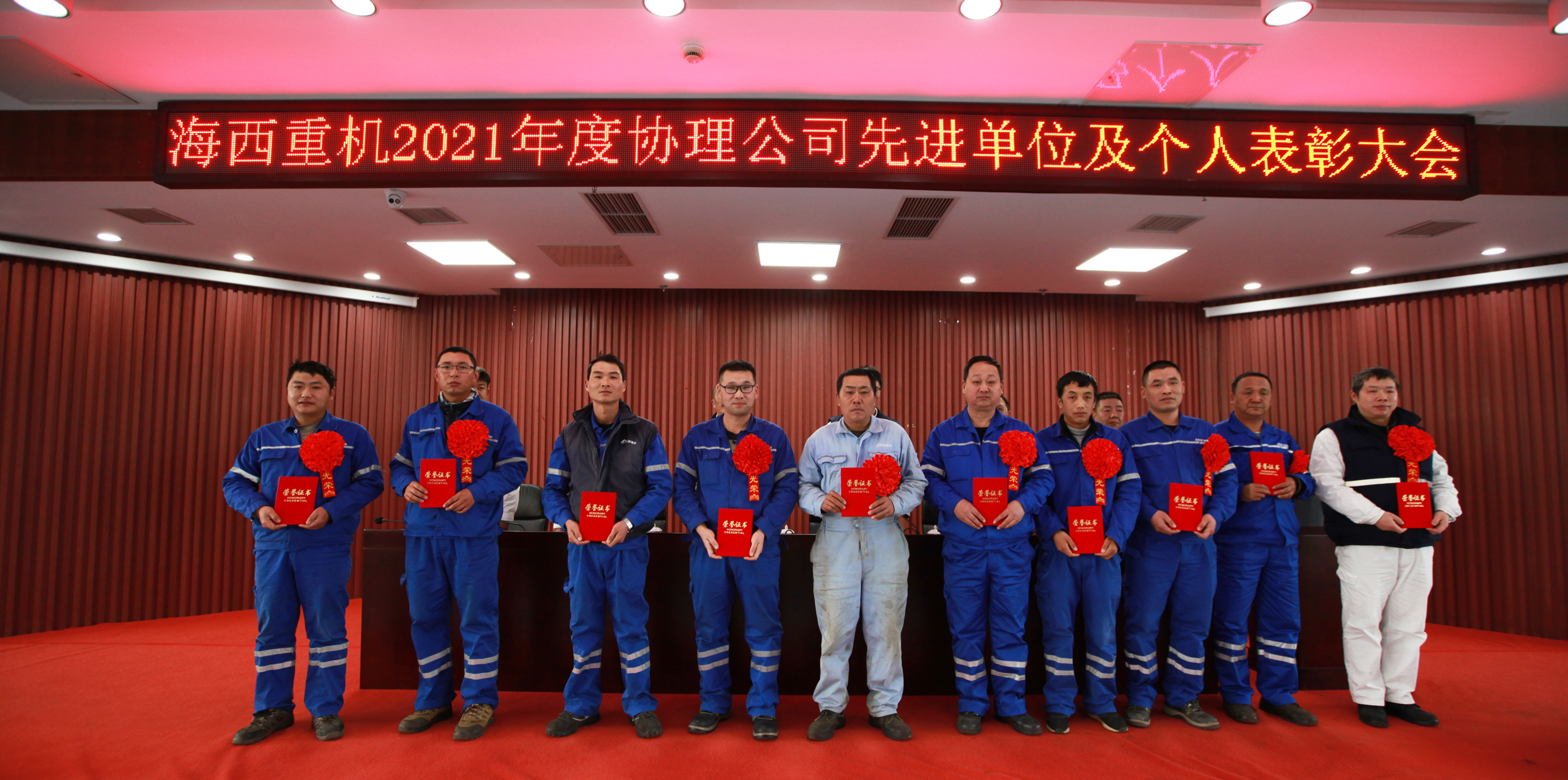 1月21日,中國船舶集團(tuán)旗下武漢船機(jī)海西重機(jī)公司2021年度優(yōu)秀協(xié)理公司及其優(yōu)秀技能人員、先進(jìn)個(gè)人表彰大會(huì)在901會(huì)議室隆重召開。公司黨委副書記、總經(jīng)理蔣新標(biāo),黨委副書記、紀(jì)委書記、工會(huì)主席朱聲凱,副總經(jīng)理代振華、楊少波、韓燕驍、謝宛朋出席會(huì)議,公司各部門負(fù)責(zé)人、各協(xié)理公司代表、先進(jìn)個(gè)人等120余人參加了表彰大會(huì)。