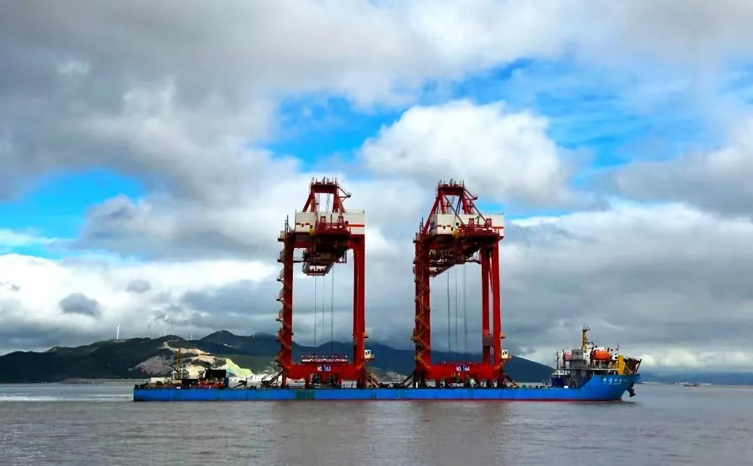 12月14日,中國(guó)船舶集團(tuán)旗下武漢船機(jī)海西重機(jī)公司為寧波港物資有限公司打造的2臺(tái)65t-45m岸橋在寧波舟山港北侖山多用途碼頭順利交機(jī)。