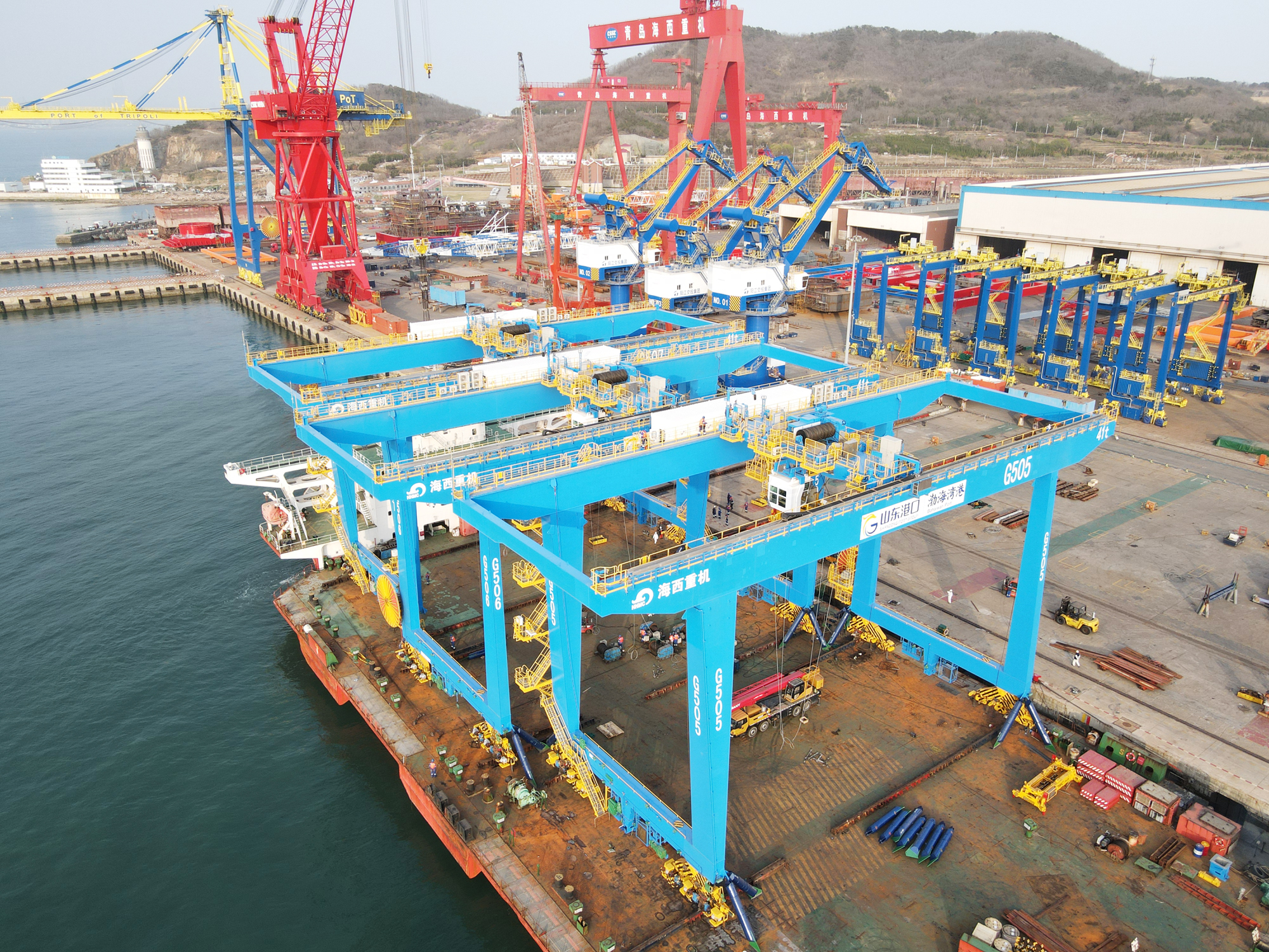 4月14日,中國(guó)船舶集團(tuán)旗下武漢船機(jī)海西重機(jī)公司為山東港口濰坊港打造的3臺(tái)41t-37m自動(dòng)化軌道吊順利發(fā)運(yùn)。