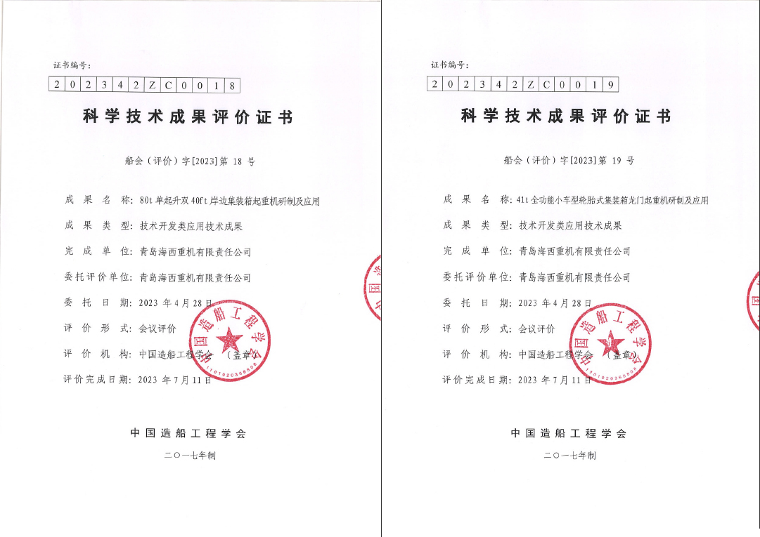 近日,中國船舶集團(tuán)旗下武漢船機(jī)海西重機(jī)公司“80t單起升雙40ft岸邊集裝箱起重機(jī)研制及應(yīng)用”、“41t全功能小車型輪胎式集裝箱龍門起重機(jī)研制及應(yīng)用”兩項(xiàng)科技成果通過中國造船工程學(xué)會(huì)科學(xué)技術(shù)成果評(píng)價(jià),與會(huì)專家一致認(rèn)為,整體技術(shù)水平達(dá)到國際先進(jìn)水平。