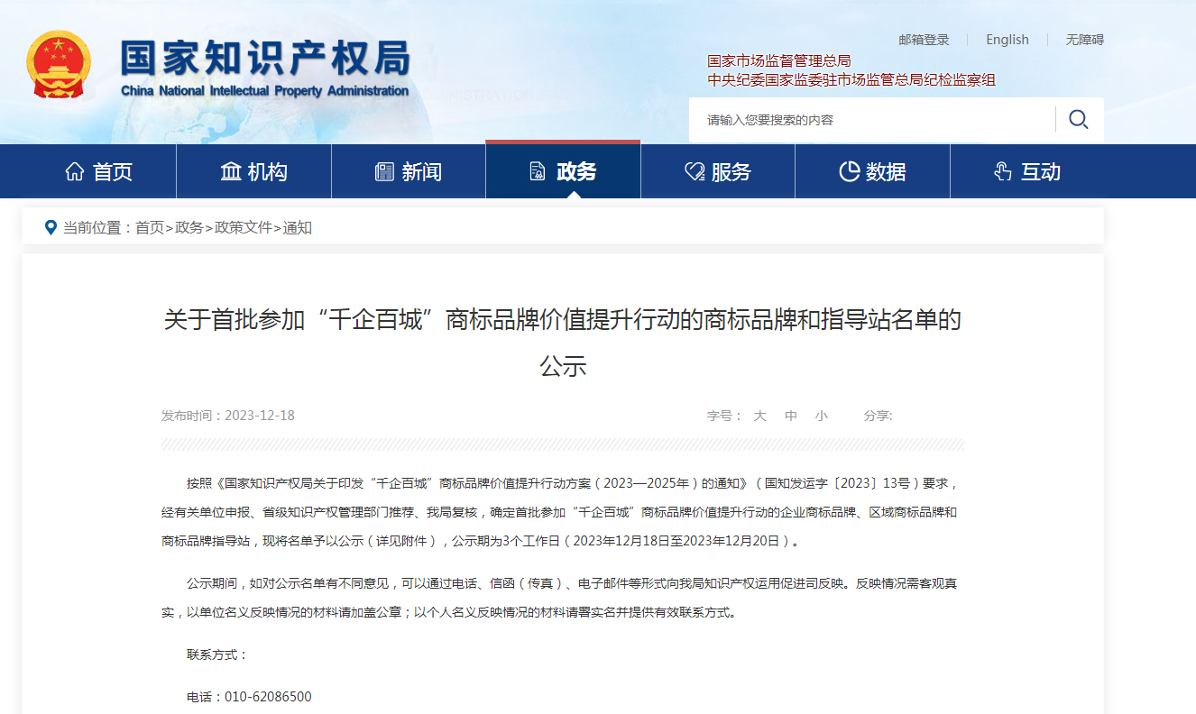 “千企百城”商標(biāo)品牌價值提升行動,由國家知識產(chǎn)權(quán)局組織實施,旨在推動國內(nèi)企業(yè)加強商標(biāo)品牌建設(shè),完善商標(biāo)品牌管理體系,由“中國制造”向“中國品牌”轉(zhuǎn)變,提升商標(biāo)品牌價值,有力支撐知識產(chǎn)權(quán)強國和品牌強國建設(shè),促進經(jīng)濟高質(zhì)量發(fā)展。
