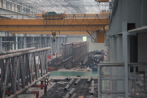 F1項目工期緊、要求高、難度大,我工藝部針對施工中所發(fā)生的問題,快速溝通協(xié)調(diào),不斷優(yōu)化施工工藝。協(xié)助鋼構部明確各節(jié)點工期目標,充分調(diào)動了員工的積極性、主動性和創(chuàng)造性。目前,施工人員已克服了主管對接、支管裝配和焊接等難點,成功完成了臂架中部4件120米長、110噸重的桁架分片的制作和豎起,為該項目的按期完工奠定了堅實的基礎。