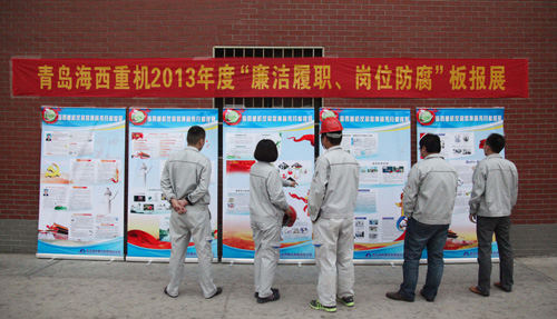 以反腐倡廉深入開展為契機(jī),青島海西重機(jī)將廉政文化融入企業(yè)核心價值觀建設(shè),堅持“防、救、戒”三術(shù)相結(jié)合,進(jìn)一步筑牢了拒腐防變的思想防線。營造出了“學(xué)廉、倡廉、崇廉、守廉”的良好氛圍,打造了風(fēng)清氣正的干事創(chuàng)業(yè)環(huán)境,為企業(yè)持續(xù)、健康、穩(wěn)健發(fā)展構(gòu)筑牢固的“鋼鐵長城”,提供紀(jì)律保證!